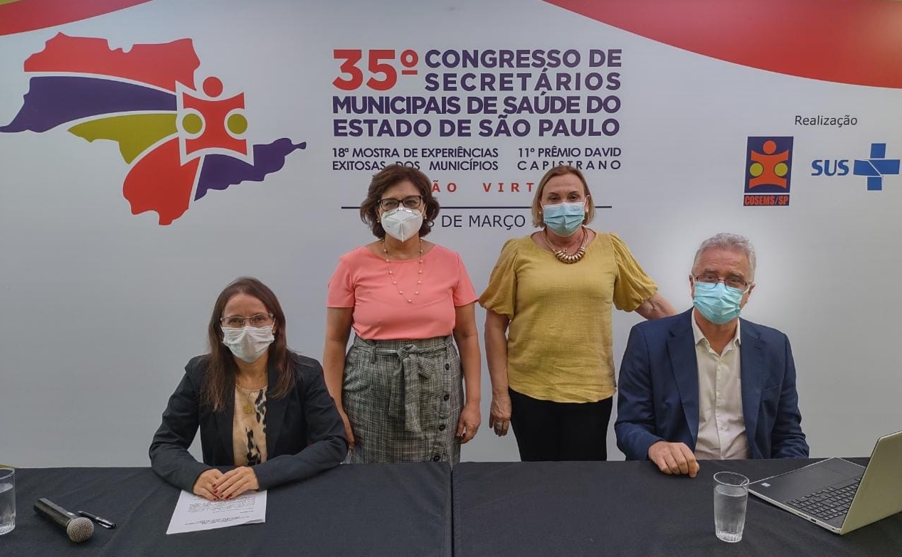 Nesta quarta-feira (16) foi realizada a abertura oficial do 35º Congresso do COSEMS/SP. Estiveram presentes o Secretário de Estado da Saúde de São Paulo, Jean Gorinchteyn, representando a Organização Panamericana de Saúde (OPAS), Rodrigo Frutuoso, o presidente do CONASEMS, Wilames Freire e o presidente do COSEMS/SP, Geraldo Reple Sobrinho. A cerimônia foi mediada pela vice-presidente do COSEMS/SP, Adriana Martins. O 35º Congresso segue até dia 18 de março, totalmente online. Acesse a programação – https://www.congressoscosemssp.com.br/congresso2022/
